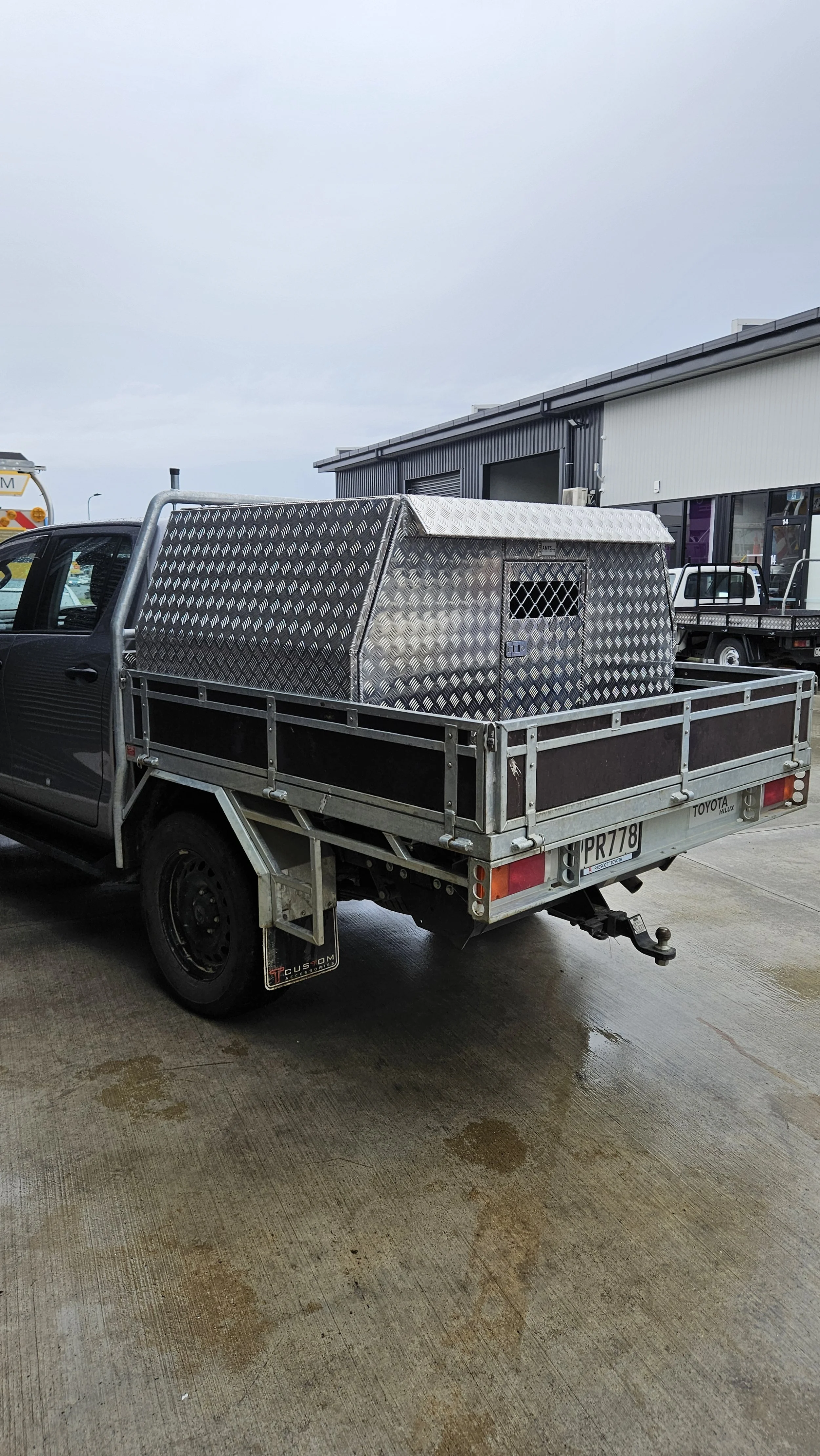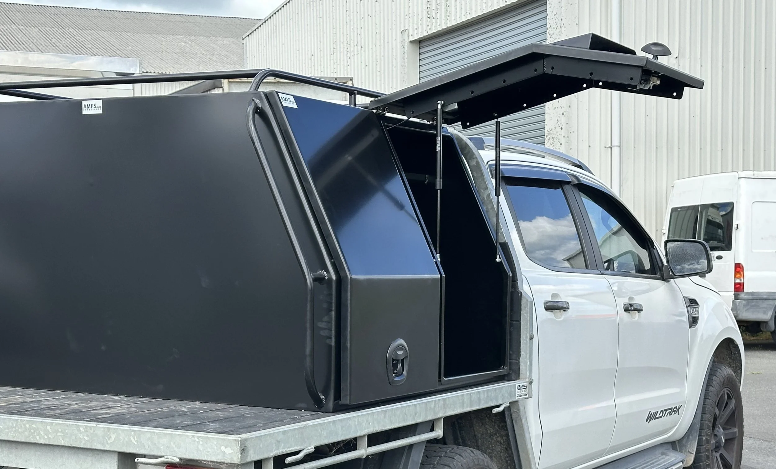 This box is made with aluminium treadplate and can come with built in shelving or be left bare. Waterproof, lockable, custom build, what else do you need?
